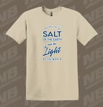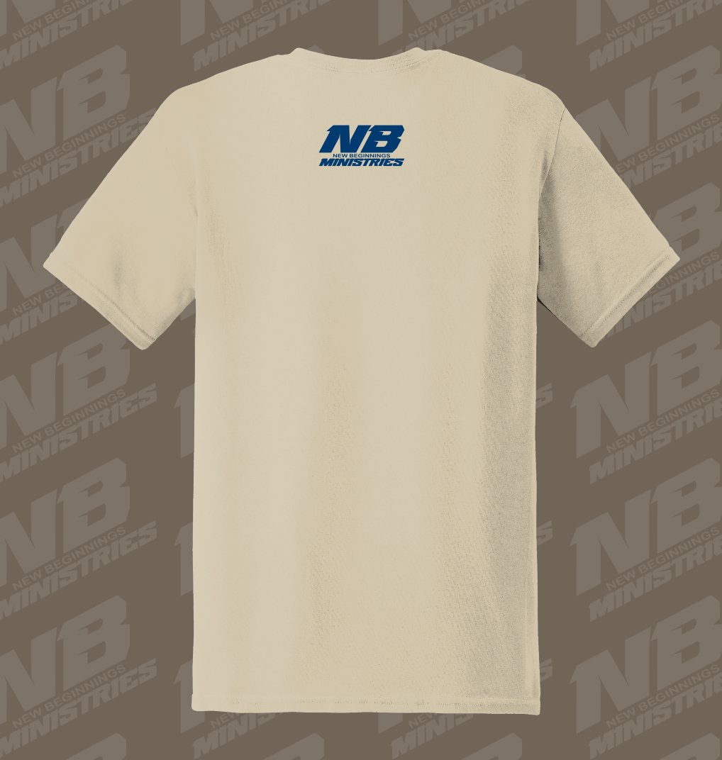 Khaki T-Shirt w/white and navy blue prints