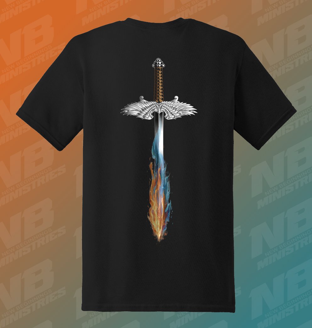 Black t-Shirt w/ front "Sword of The Spirit" and back "Sword w/Flames